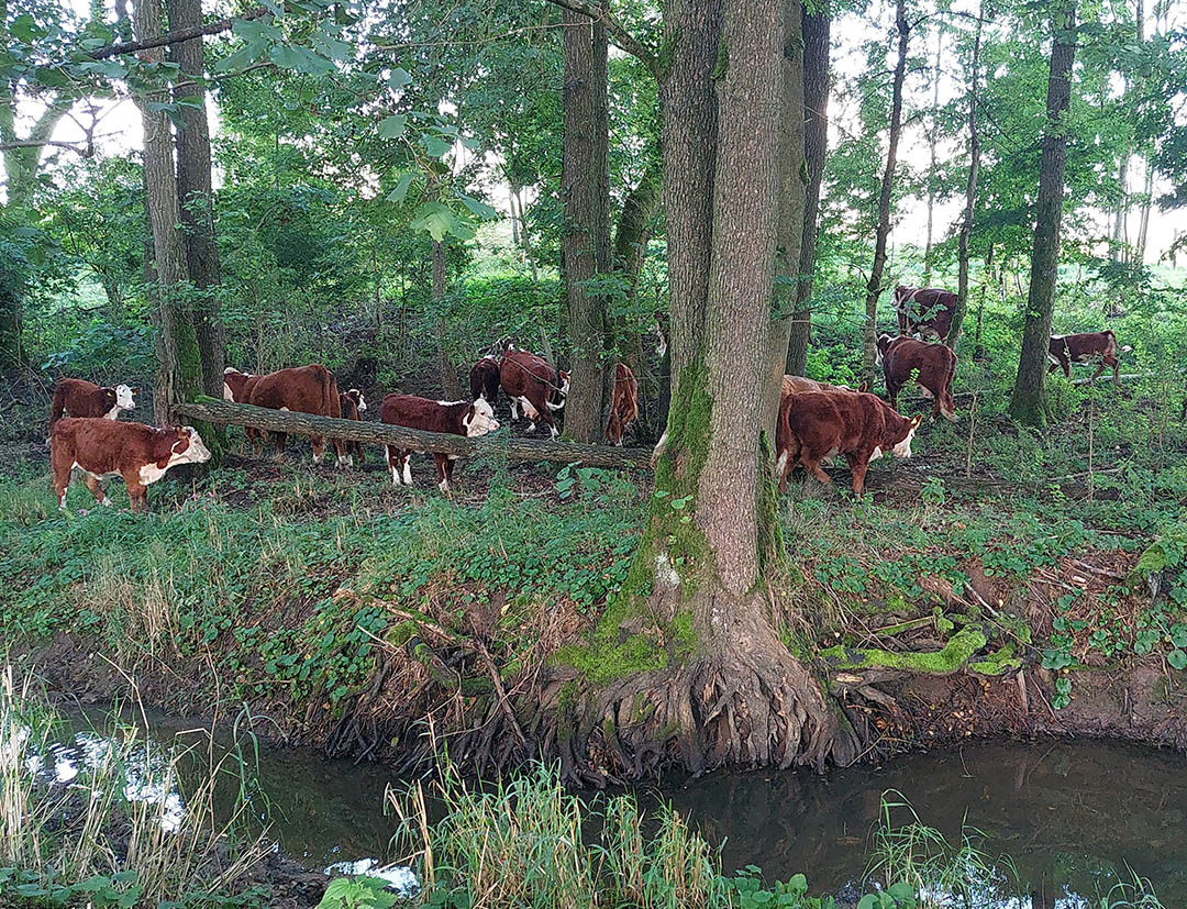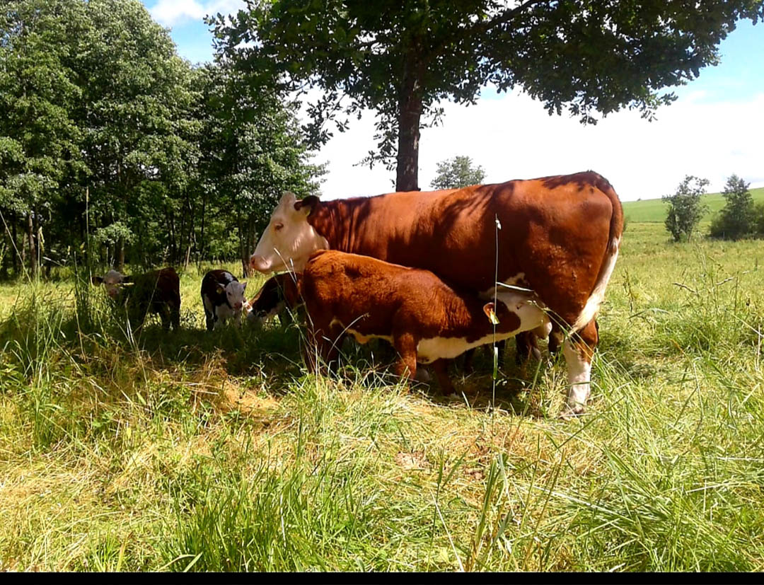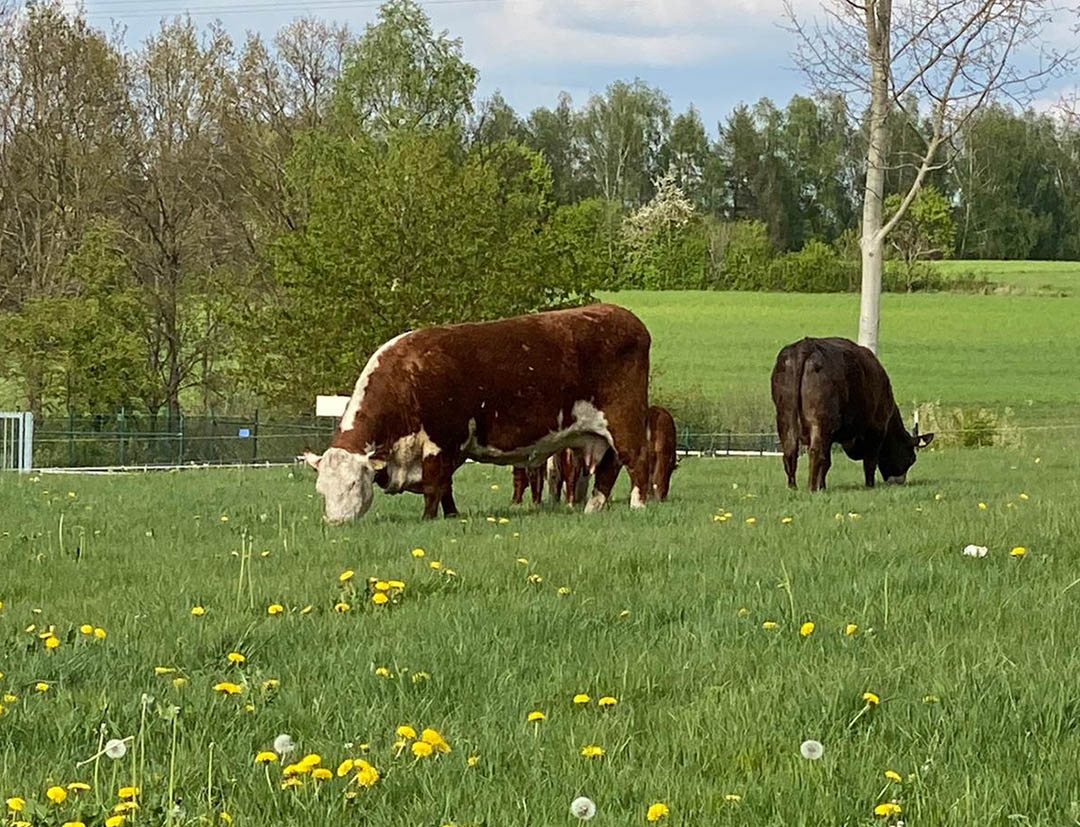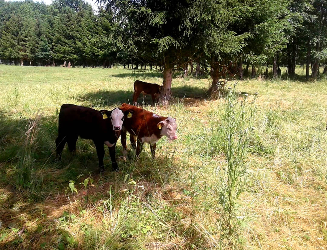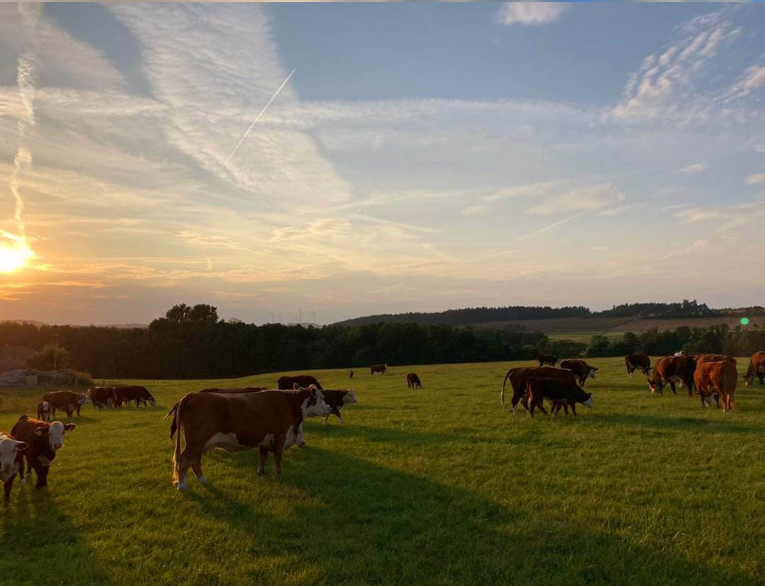 Das Fleisch unserer Weidetiere ist von ganz besonderer außergewöhnlichen Qualität. Fein marmoriert und höchster Geschmack. Liegt daran, dass unsere Rinder ihr Leben freilaufend auf der Weide verbringen, Gras und Kräuter fressen, die sie im eigenen Wald finden. 170.000qm Wiesen und Wald mit eigenem Bach – ein Paradies für unsere Tiere. Tierhaltung, so wie man es sich ideal vorstellt.